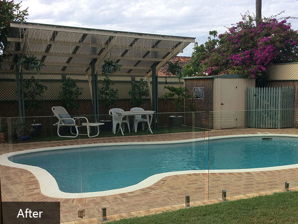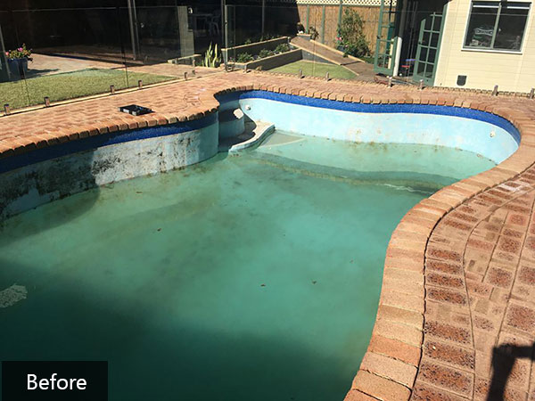 The team also removed the old water tile lines and added a new life to the pool with a fresh coating.